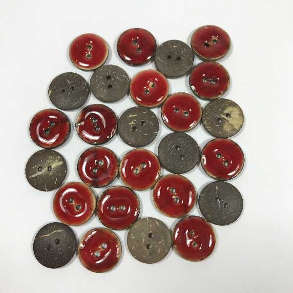 Mangler du knapper? Da må du se de flotte knappene vi har funnet til deg. De er laget av kokos, med et lag emaljeglasur over. Her gir fargen i glasuren en skikkelig fin kontrast til selve kokosnøtt-treet i knappen. Det er flere forskjellige farger å velge mellom, som du finner i listen over varianter.
